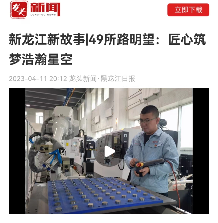 4月11日,黑龙江日报龙头新闻客户端在“新龙江新故事”专栏以《49所路明望:匠心筑梦浩瀚星空》为题,报道了49所军工部数控班长路明望弘扬工匠精神,把控产品质量,为载人航天事业发展提供可靠保障的相关事迹。